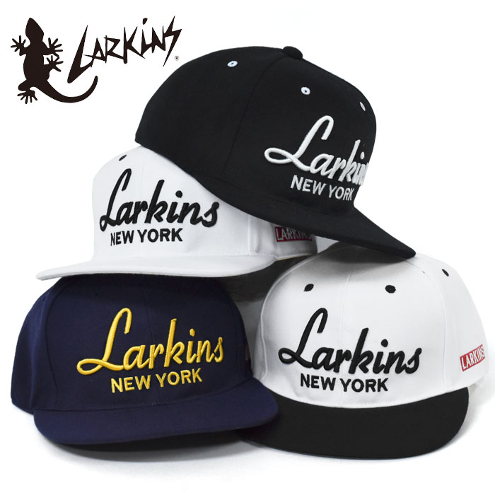 LARKINS ラーキンス アクリル 刺繍 ロゴ ニューヨーク ベースボールキャップ/BBキャップ ストレートキャップ ベースボール ロゴキャップ フラットバイザー 平つば 6パネル キャップ 帽子 CAP ストリート系 かわいい おしゃれ トカゲ NY NEW YORK 無地 シンプル ブランド